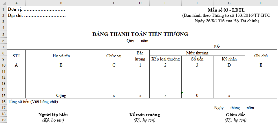 – Link tải về: Bảng thanh toán tiền thưởng theo Thông tư 133