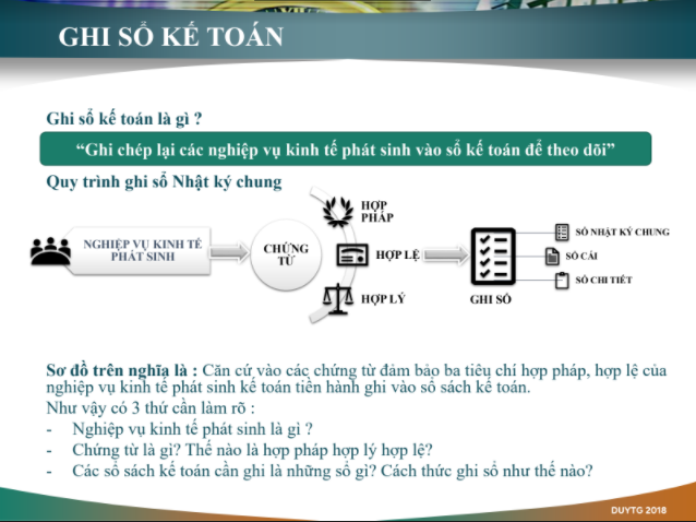 1. Căn cứ vào chứng từ kế toán đã đảm bảo ba tiêu chí (hợp pháp, hợp lệ, hợp lý) của nghiệp vụ kinh tế phát sinh đó để kế toán tiến hành ghi vào sổ sách kế toán